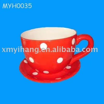 Giant Red With White Polka Dots Tea Cup Planter Tea Cup Planter