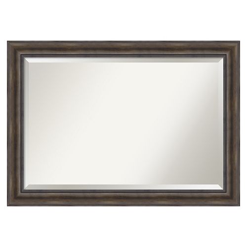 Large Antiqued Hickory Tone Beveled Wall Mirror Langford 80x50