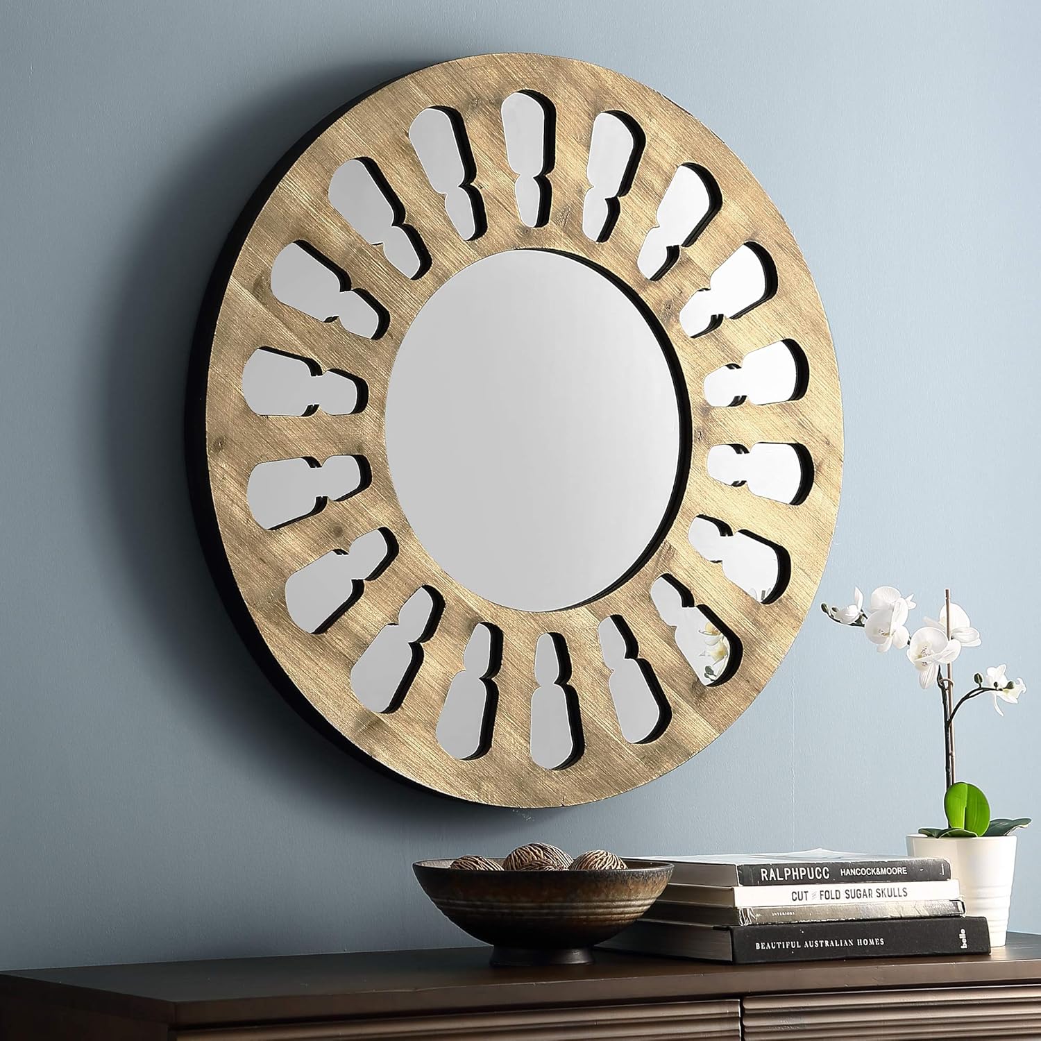 Ritesune Round 30 Inch Wall Mirror Decor Rustic Wood Frame