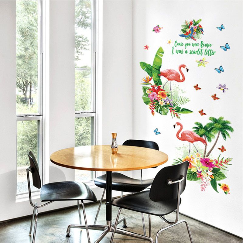 Extra Large Flamingo Green Leaves Flowers Wall Stickers Living
